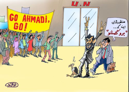 با این نکته ارسالی خیلی با حال ، به تمام خوانندگان برنامه شبکه خبرساعت 25 ، مجددا چیز میگم ! آق محمود که معرف حضورتون هست . همون که میگه دکترمحمود احمدی نژاد رئیس جمهورحکومت اسلام هستم ! کی به کیه ؟ آق محمود ملقب به " یارو" رفته نیویورک برای حال دادن و حال کردن و اینا..... درخبرها آمده بود به محض اینکه آق محمود یا همون "یارو"، پاشو ازهواپیمان گذاشت تو زمین نیویورک ....کاخ سفید از زبون اوباما عربده زد که : حمله نظامی اصلا گزینه خوبی نیست ! ولی بعد رفتند تو اتاق فکرشون ومثلا فکرکردند که اصلا معلومه قراره چه گهی بخوریم ؟ این بود که دوباره اعلام کردند : همه گزینه ها روی میزوزیرمیزو....از این حرفا گزارشگر شبکه 25 هم منتطربود تا دریه فرصت مناسبی؛ یارو رو خفتش کنه . این "یارو" الان زیر خطه واولین سوال ما اینه که : اهوی یارو ، صدای منو داری ؟ یارو : آره صدات رومیشنوم . مطمئن باش بقیه هم میشنون فقط خودشونو زدن به کوچه علی چپ.... مجری : منظورت همون کبک و برف و مبارزه زیربرفی واینا.... یارو : آره همینه . تو صدا رو میشنوی ؟ مجری : آره صدا میاد . ای ناکس گوزیدی یا داری سرود ملی کوروشو میزنی ؟ ! یارو : نه به جان خانم والده....من فقط با بسم الله شروع کردم. مجری : البته فرقی نمیکنه . فقط جان بطول ، اینقدر طول موج ، توی این مصاحبه عوض نکن . مثلا از بع بع نپربه واق واق و یه دفعه بری به عرعرعر....چون توی تایپ مشکل ایجاد میشه ، من که امکانات کریستین امانپوررا ندارم تا هرصدایی ازتو رو سریع ترجمه کنه و انعکاس بده..... خب" یارو" ، رفتی نیویورک و ثابت کردی اصلا برج دو قلویی وجود نداشته.... الان برنامه بعدی تو چیه و چه میکنی ؟ فقط بلند زر بزن تا خوب تایپ بشه. یارو : والله الان که دارم کونمو میخارونم بعدش انگشت مبارک رو درمیارم و میکنم تو دماغم و بعد میکنم تو گوشم وبعد.....