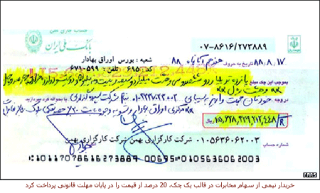 خریدار نیمی از سهام مخابرات در قالب یک چک، 20 درصد از قیمت را در