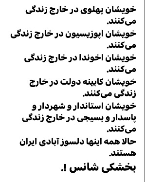 چاپلوسی, فساد مطلق, رانت خواری,نابردباری, و غُل و زنجیر و چوبه