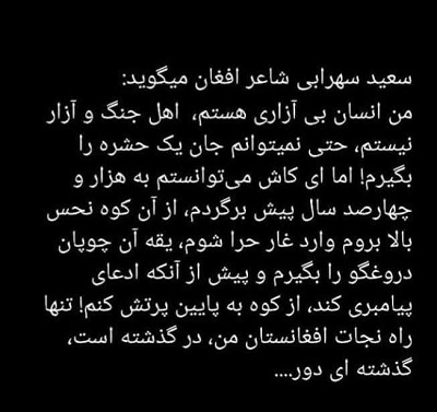 در افغانستان وحشی ترین قبیله تاریخ انسان با لجستیک مطلق غرب حاکم شد و با سازمان دولتهای جهان مشغول مذاکره است ... در ایران یک جلاد سخنرانی میکند و در سازمان دولتها میکرفون رسمی دارد ، در سوریه ، عراق ، لبنان کلا در خاورمیانه خون جاری است ... و من اعتراض دارم چرا کسی در آنجا فکر کون گشاد مرغها نیست ؟ همه فکر زنده ماندن خودشان هستند این درست نیست ...