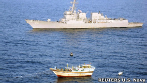 دزدان دریایی بدون مجوز به گروگان گرفته شده بودند، آزاد کرده است.نیروی دریایی آمریکا همچنین ۱۵ دزد دریایی بدون مجوز را که احتمالا