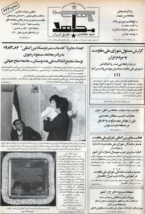 «پس از معرفی خانم رجوی بوسیله یك انجمن حقوق بشری هندی مستقل و