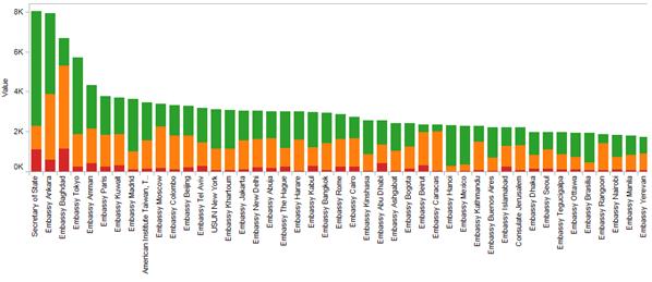 شده اند. تعداد این اسناد 251،287 سند محرمانه است که از 274 سفارتخانه و