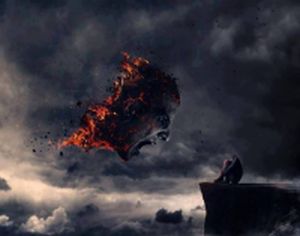 چهره ای با خاک پوشیده می شود و چهره ای دیگر او را در زیر باران